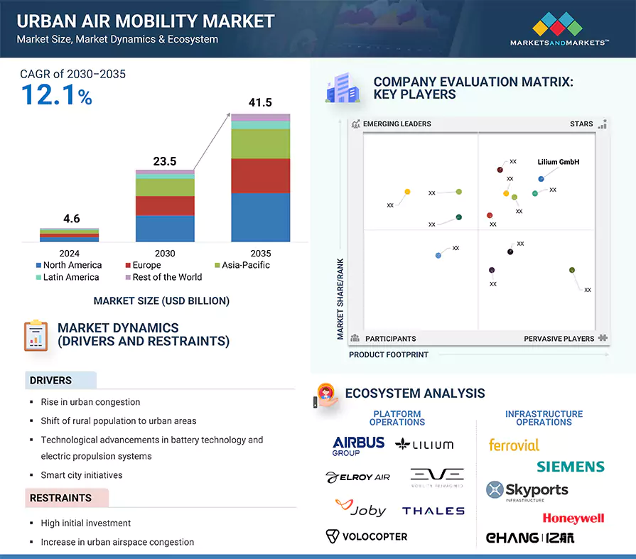 Urban Air Mobility Market worth $41.5 Billion in 2035, at a CAGR of 12.1%