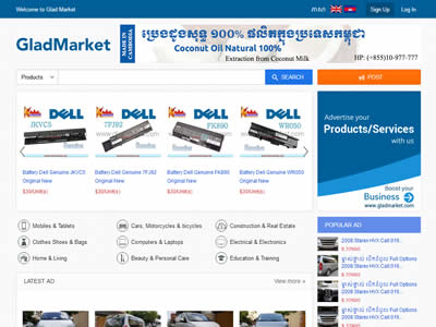 E-commerce is booming in Cambodia, and several local e-commerce websites, such as gladmarket, shop168 and mall855, are becoming more and more popular. The website sells products from more than 70 companies around the world, enabling customers to choose from a wide range of product catalogues.