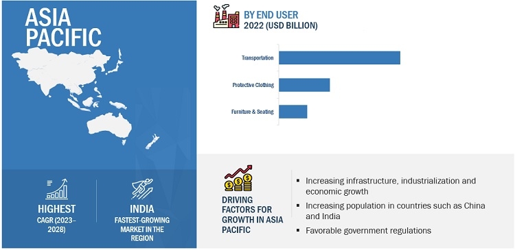 Asia Pacific is projected to be the largest market for coated fabrics, driven by the high economic growth due to growing automotive & chemical industries and the rising population in region especially in India and China. There is high growth seen in protective clothing segments in this region due to increased government regulations for safety concerns in various industries such as transportation, chemical, oil & gas, construction and residential housing. This is due to growing economic conditions, rising GDP, active manufacturing sectors and healthcare sectors in emerging countries. Due to these reasons the demand for coated fabrics in Asia Pacific region is increased.