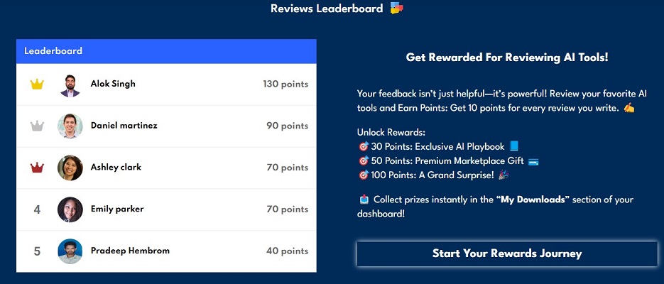 Digicrusader introduces a unique feature where users can earn points by reviewing AI tools. These points can be redeemed for exciting rewards, turning user engagement into tangible benefits.