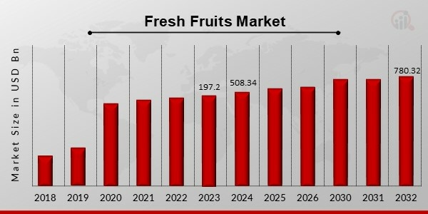 The Fresh Fruits Market is expected to reach a valuation of 780.32 billion USD in 2032.