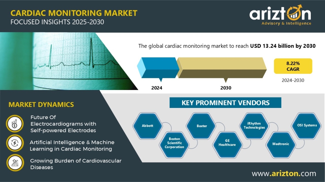 According to Arizton’s latest research report, the global cardiac monitoring market is growing at a CAGR of 8.22% during 2024-2030.