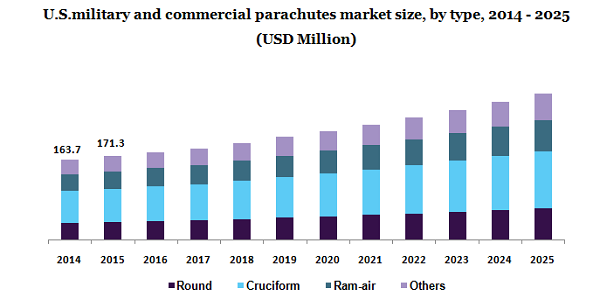 Military and Commercial Parachutes Type Outlook (Revenue, USD Million, 2014 – 2025)