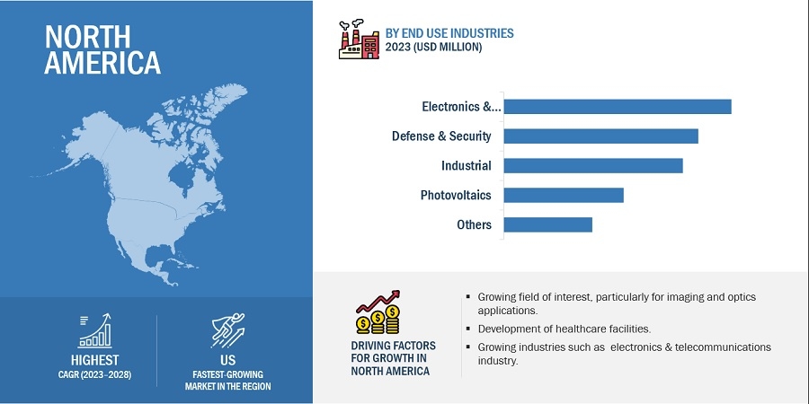 The Near IR Absorbing Material Market in North America is anticipated to register a CAGR of 08.2% between 2023 and 2028. The Near IR Absorbing Material Market in North America comprises the US, Mexico, and Canada. It was the largest market of The Near IR Absorbing Material Market in 2022. The energy-efficient solutions fuel the demand for NIR absorbing materials. North America places a strong emphasis on energy efficiency and sustainability. NIR absorbing materials can be used in various applications, such as smart windows or solar control films, to reduce solar heat gain and improve energy efficiency in buildings.