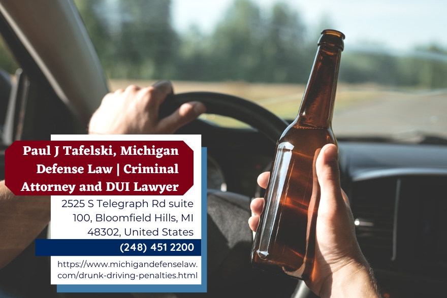 Oakland County DUI defense attorney Paul J. Tafelski (https://www.michigandefenselaw.com/drunk-driving-penalties.html) provides a detailed overview of the serious legal consequences drivers may face under Michigan’s impaired driving laws in a recent article published on the Michigan Defense Law website. The article, titled Drunk Driving Penalties, outlines the penalties associated with different types of DUI charges, including Operating While Intoxicated (OWI), Operating While Visibly Impaired (OWVI), and the state’s “Super Drunk” law, which targets high blood alcohol content offenses.
