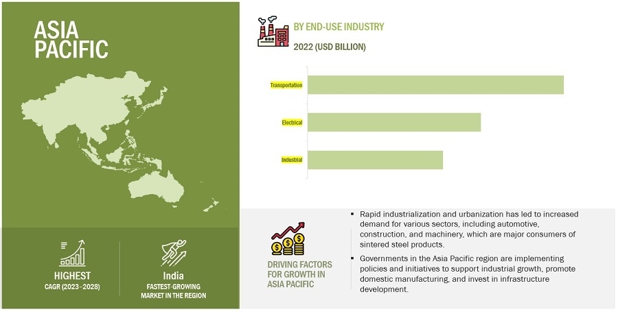 While South America and the Middle East & Africa have established sintered steel markets, their growth rates are comparatively slower than the Asia Pacific region. The rise of the middle-class population and the improvement in living standards are anticipated to fuel the demand for sintered steel, as various industries will require increased steel quantities. Notably, market players are observed to be shifting their focus from developed countries like the US and Germany to emerging high-consumption markets such as China and India.