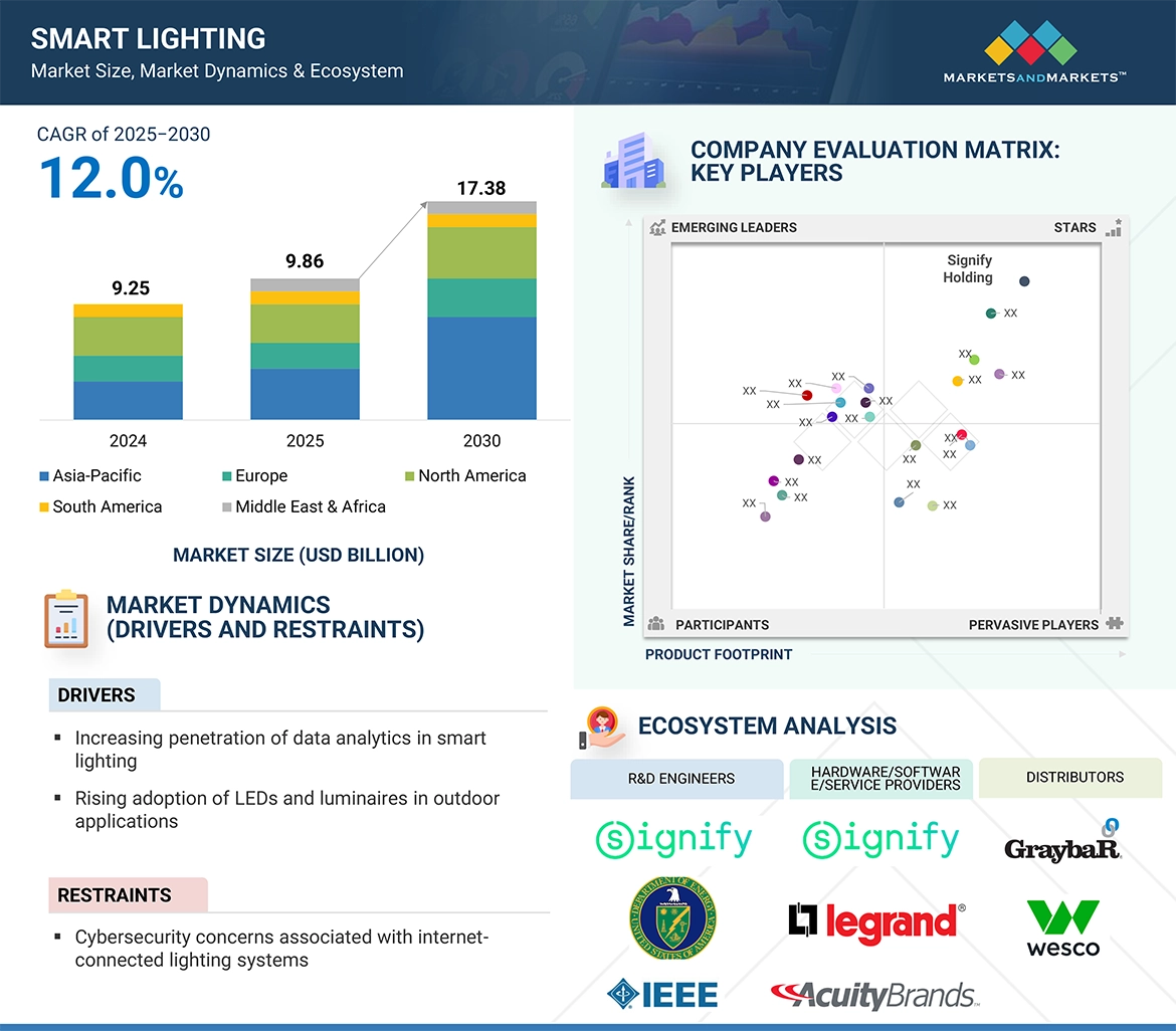 Smart Lighting Market worth $17.38 Billion by 2030, at a CAGR of 12.0%